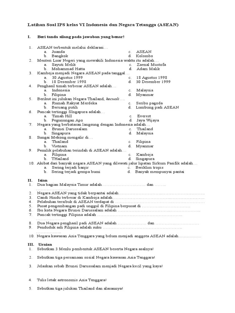 Kumpulan soal ips kelas 6 sd semester 2 genap dan kunci jawabannya.